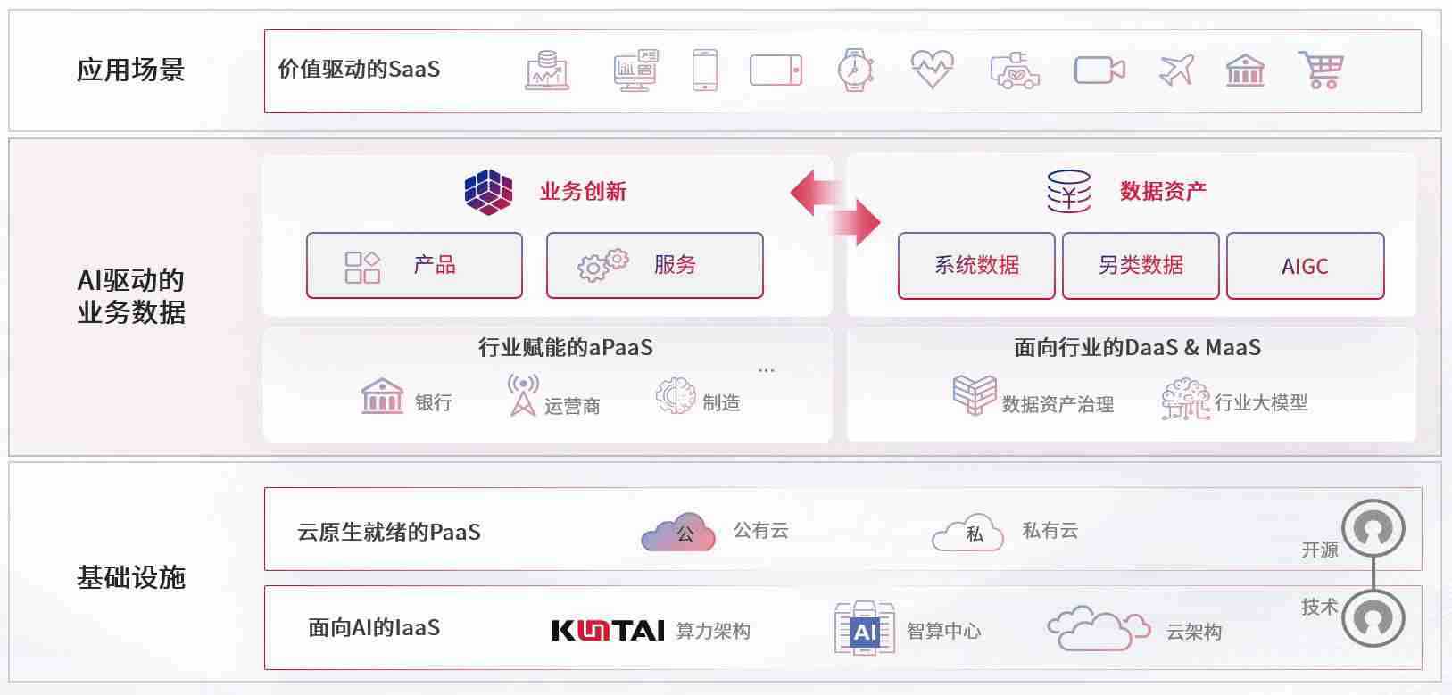 数字时代,,围绕企业数字化转型的关键要素,,,J9.COM数码开创性的提出数云融合战略和技术体系框架,,,着力在云原生、、、、数字原生、、、、AI原生和信创产业上架构产品和服务能力,,为处在不同数字化转型阶段的快消零售、、、汽车、、、、金融、、、医疗、、政企、、、教育、、运营商等行业客户提供泛在的敏捷IT能力和融合的数据驱动能力,,,,构建跨界融合创新的数字业务场景和新业务模式,,助力企业级客户建立面向未来的核心能力和竞争优势,,全面推动社会的数字化、、智能化转型升级。。。