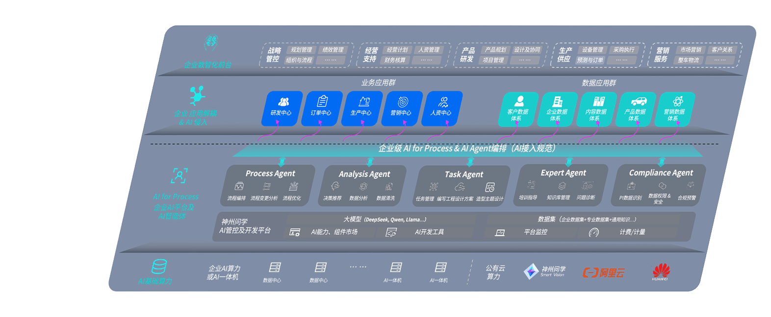 端到端的一站式AI工作空间深度融合了从企业战略规划到日常经营的全流程业务板块,,,,定向解决车企内部领域多、、、部门多、、、、链条长、、、场景碎片化等难题,,,,支持车企快速构建以AI为核心的生产力写作体系,,实现任务执行与AI能力的无缝集成与交互